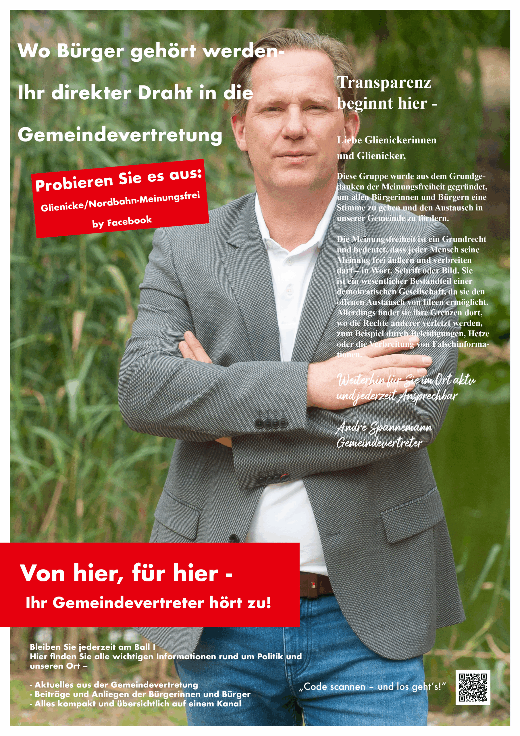 lassen Sie uns gemeinsam die Politik in der Gemeinde etwas lebendiger gestalten. Werden Sie ein Teil unserer Arbeit und machen Sie mit uns die Gemeindesitzungen etwas konstruktiver. Die Zeit der langwierigen Debatten ohne Ergebnisse müssen ein Ende finden. Verschwendungen von öffentlichen Geldern ohne Rücksicht auf den Haushalt in Glienicke müssen gestoppt werden. Sämtliche Förderungen von Vereinen gehören auf den Prüfstand gestellt. Dabei hat die Haushaltssanierung für uns höchste Priorität. Es darf nicht sein, dass der Haushalt weiter in die Roten Zahlen gewirtschaftet wird und mit der Grundsteuererhöhung ab 2025 kurzfristig saniert werden soll. Die AFD Glienicke setzt sich dabei für Sie ein und erläutert Ihnen die Themen und unsere Ziele gerne persönlich.